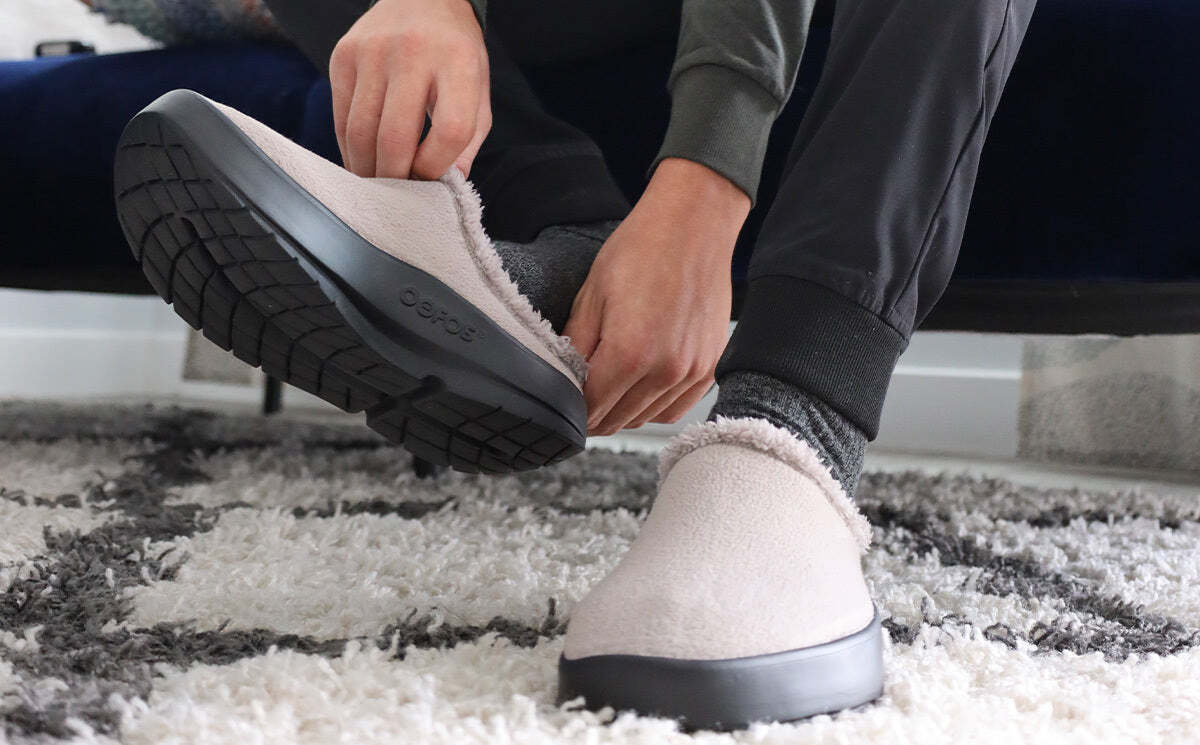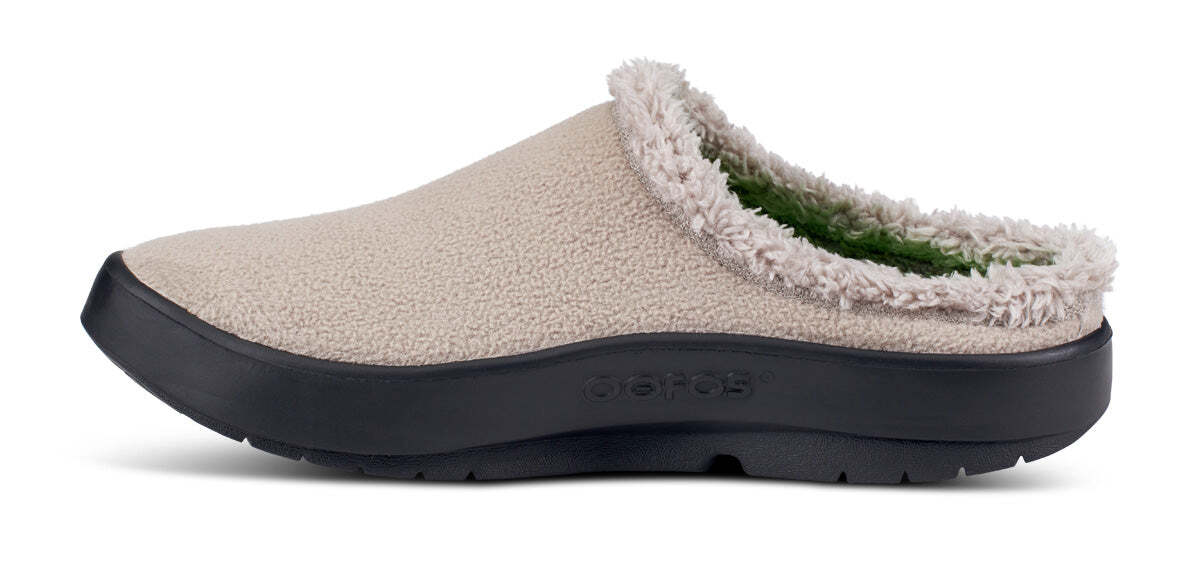 The OOcoozie Mule is the perfect around the house or post-gym option to slide into for stability and relief. Our unique one-of-a-kind OOfoam technology that absorbs impact is matched with a warm vegan sherpa material that is both recyclable and machine washable. Add in the patented footbed design that cradles and supports arches and you’ll recover faster. A versatile hygge style boasting active recovery - get cOOzy.