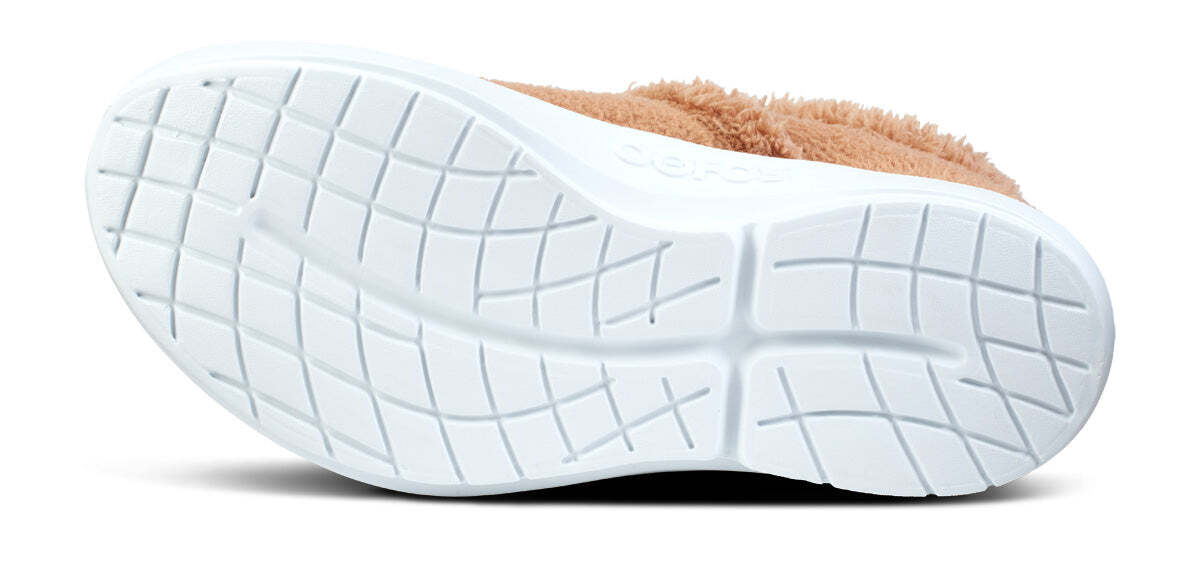 The OOcoozie provides the perfect blend of cushion and stability for both indoor lounging and quick errands out. The upper is constructed with a warm vegan sherpa material that is both recyclable and machine washable. Like all OOFOS products, it has our unique one-of-a-kind OOfoam technology that absorbs impact, so your body doesn’t have to. Add in the patented footbed design that cradles and supports arches and you’ll recover faster. Active recovery with the soft, cozy warmth you desire in a versatile hygge style.